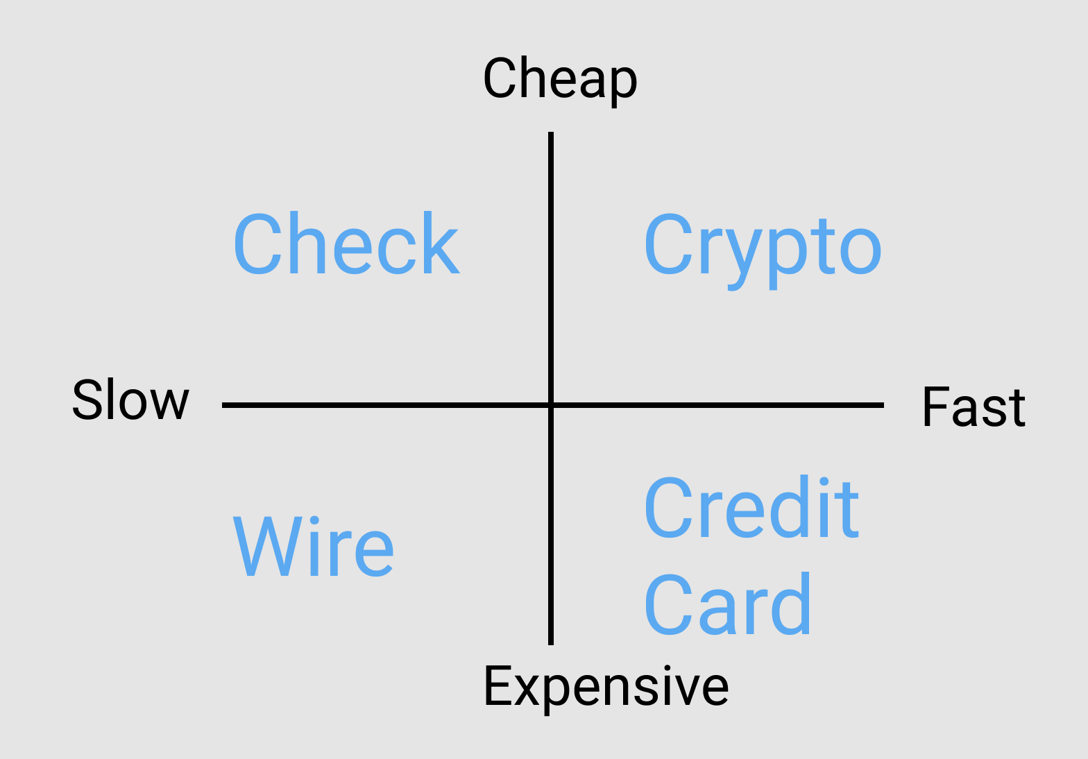 When money is fast and cheap to move, we can send it for micro-tasks. We could be paid for every 10 minutes we work. We could buy a move ticket and pay for every 15 minutes we stay in the theatre. We could create bounties to have someone perform a small task for our company and pay them immediate.