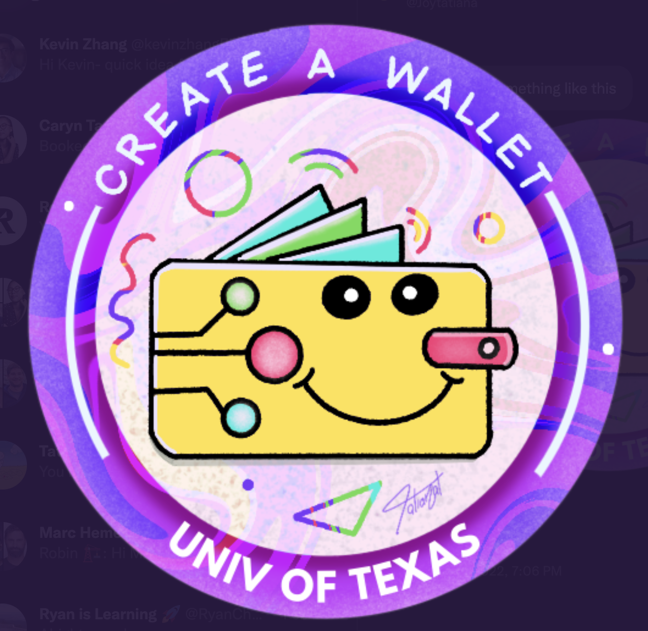 The quick and free way to do this is with a POAP. In the case of UT, we had the amazing Tatiana create this POAP (don’t forget - you have to do it ahead of time). Then, the students can claim it and view it. With the Indian students, Tatiana hosted an entire session on designing POAPs with Canva so they could build their own POAPs for their classmates (and maybe become professional POAP designers!).