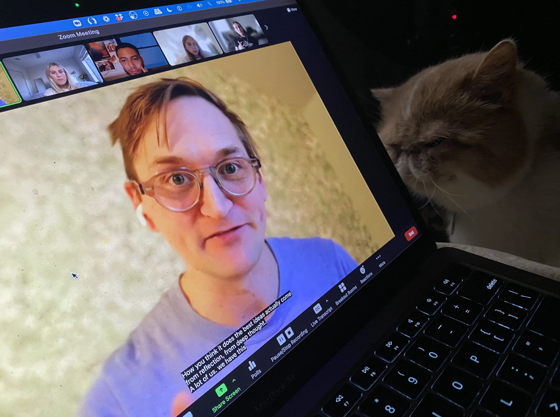 Then, they turn their cameras on when they want to answer yes to the question. We see who answers yes, turn cameras off, and repeat the process.